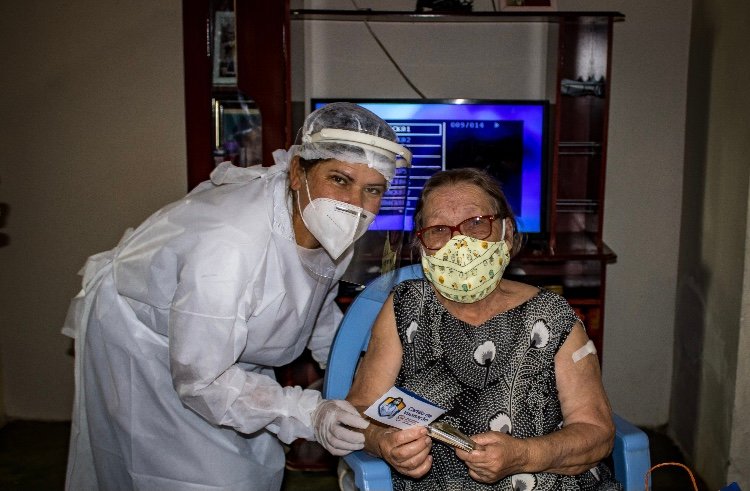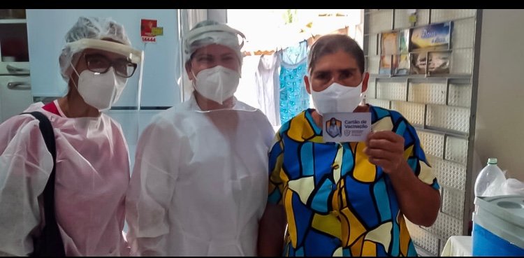 Os profissionais que atuam na vacinação estão sob a supervisão de um enfermeiro, sendo a equipe composta por técnicos de enfermagem da atenção básica e ACS. Para a vacinação a domicilio, foram tomadas todas as medidas de combate ao coronavírus durante o processo de imunização desses idosos.