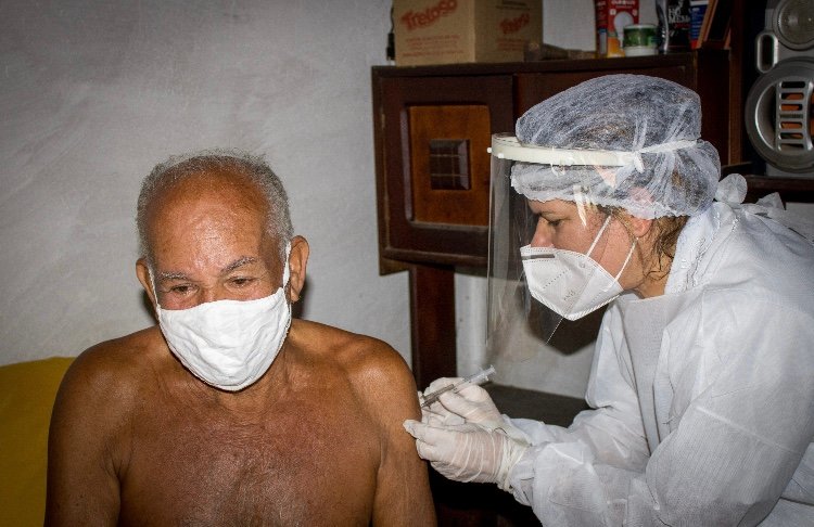 Os profissionais que atuam na vacinação estão sob a supervisão de um enfermeiro, sendo a equipe composta por técnicos de enfermagem da atenção básica e ACS. Para a vacinação a domicilio, foram tomadas todas as medidas de combate ao coronavírus durante o processo de imunização desses idosos.