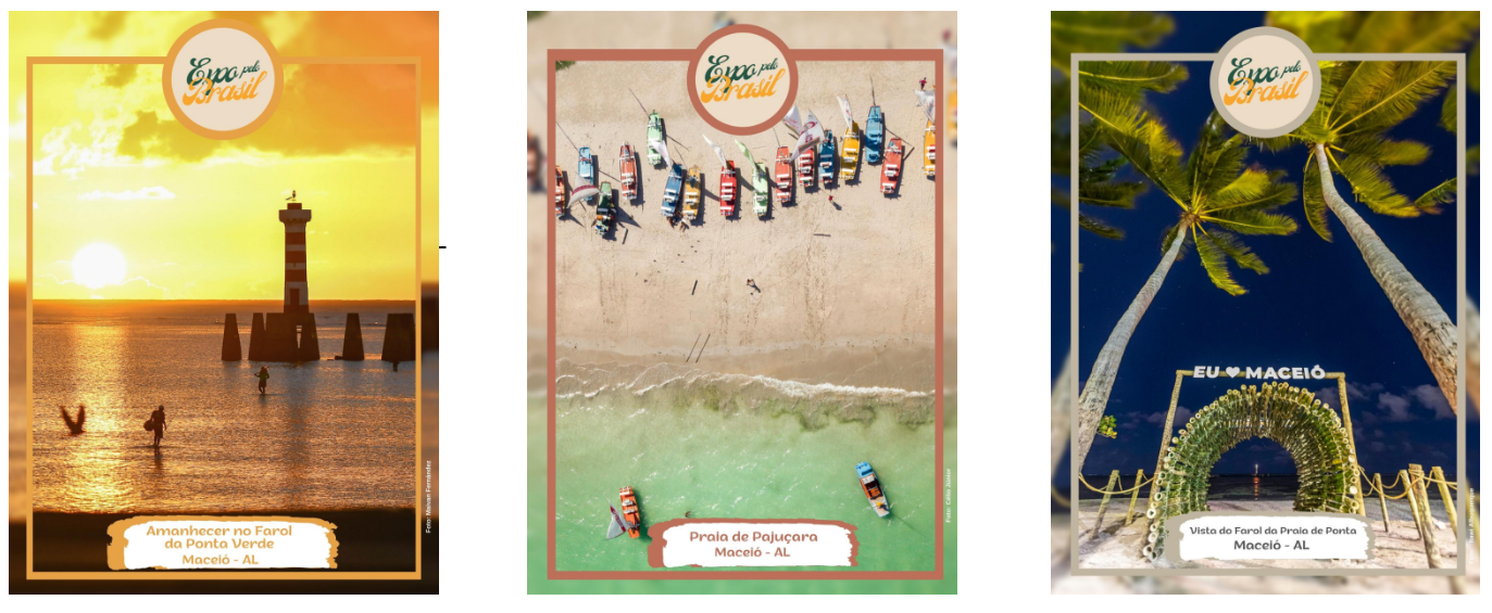 Além de possuir um litoral de 40 km de extensão, Maceió possui diversos outros atrativos, como construções históricas, festa regionais e rica gastronomia. Na mostra, podem ser vistas paisagens icônicas, como a Praia de Pajuçara, e o palhaço do guerreiro de Alagoas, um folguedo típico da região, surgido nos anos 1920.