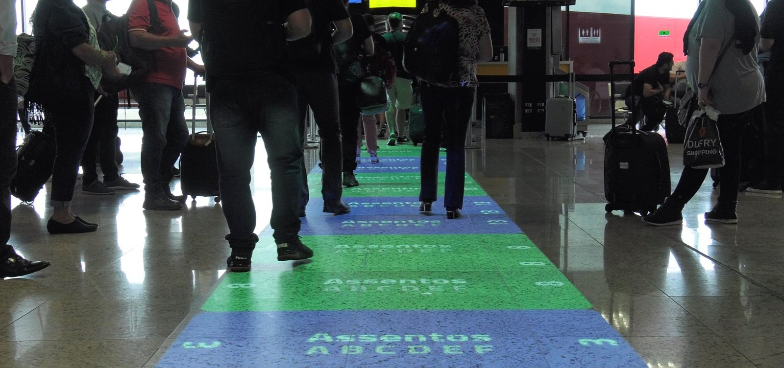 Lançado em 2020, o Tapete Azul é uma tecnologia pioneira, composta por um conjunto de projetores e monitores, que, por meio de realidade aumentada, indicam ao Cliente o momento certo de embarcar. Os projetores formam um tapete virtual colorido e móvel no chão e convidam a pessoa a se posicionar na fila de acordo com seu número de assento. “O Tapete Azul foi uma solução
