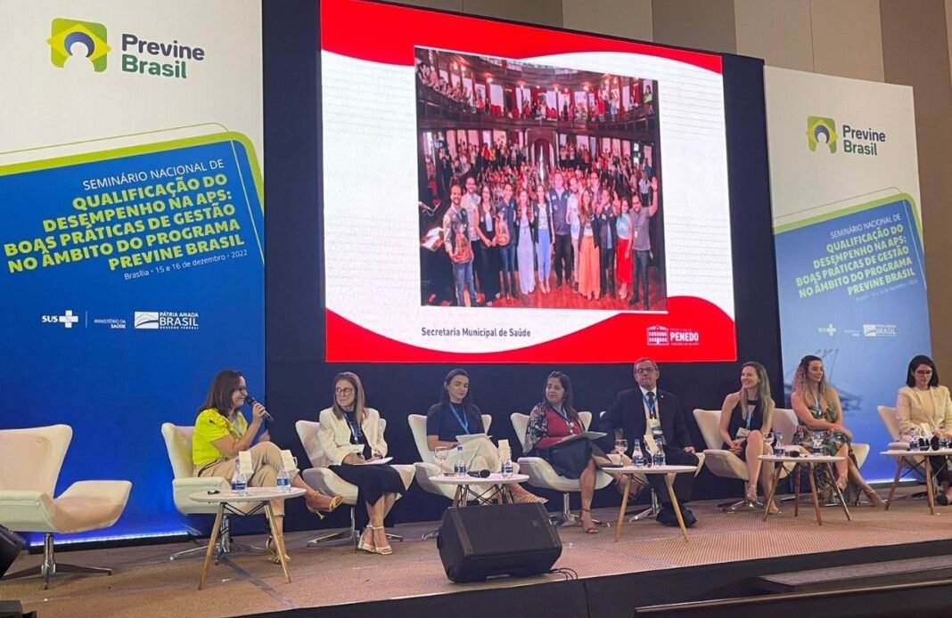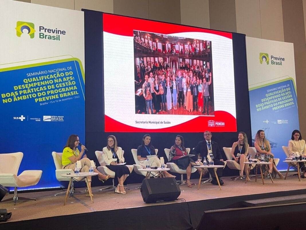 O Seminário Nacional de Qualificação do Desempenho na APS: Boas Práticas de Gestão no Âmbito do Programa Previne Brasil contou com a presença da secretária interina da saúde de Penedo, Waninna Mendonça; e da diretora de Atenção Primária da SEMS, Monike Souza Nunes Damasceno; além de diversas autoridades em saúde pública.