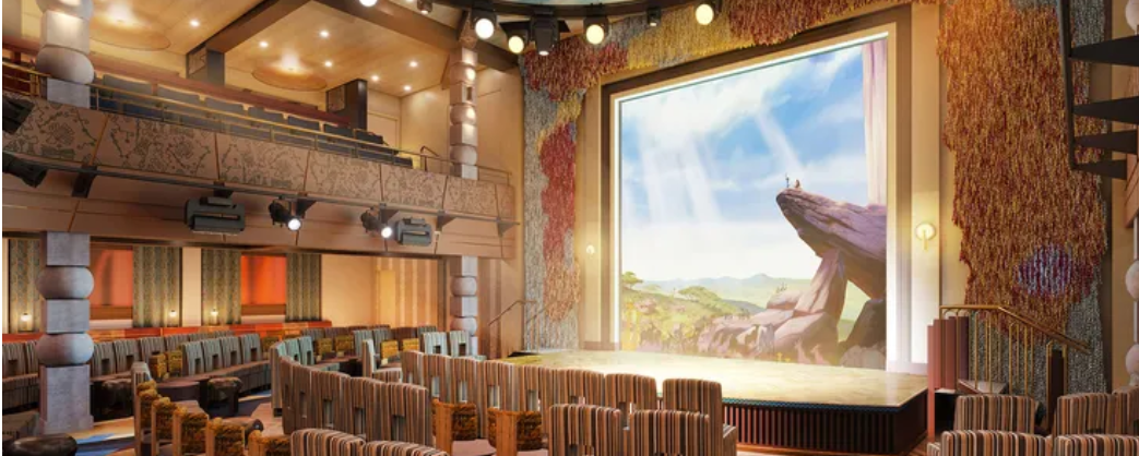 O Disney Treasure, que será lançado em 21 de dezembro de 2024, contará com espaços que homenageiam filmes clássicos, como um teatro de dois andares dedicado a “O Rei Leão” com designs inspirados na savana. O Grande Salão do Tesouro, a versão Disney de um átrio, terá como tema o filme “Aladdin”.