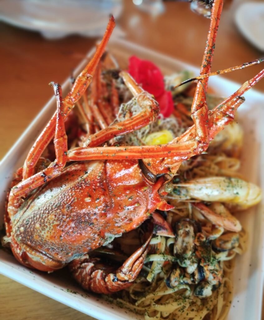 O tour por Coruripe encerrou à beira do Pontal de Coruripe, com todos os agentes de viagens à sombra para sentir uma verdadeira experiência gastronômica no Ilha Beach Club. No cardápio preparado pelo chef Cristiano Fernandes, muito amor e de entrada, caldinhos de Massunin, Camarão e Feijão. Além de Ceviche, Tartar de Salmão e Camarão Crocante. E como pratos principais, Polvo Grelhado, Peixada ao Molho de Coco e Fettuccine de Frutos do Mar com uma Lagosta enorme grelhada bem ao centro do prato.