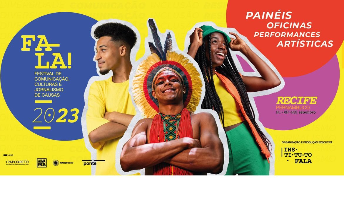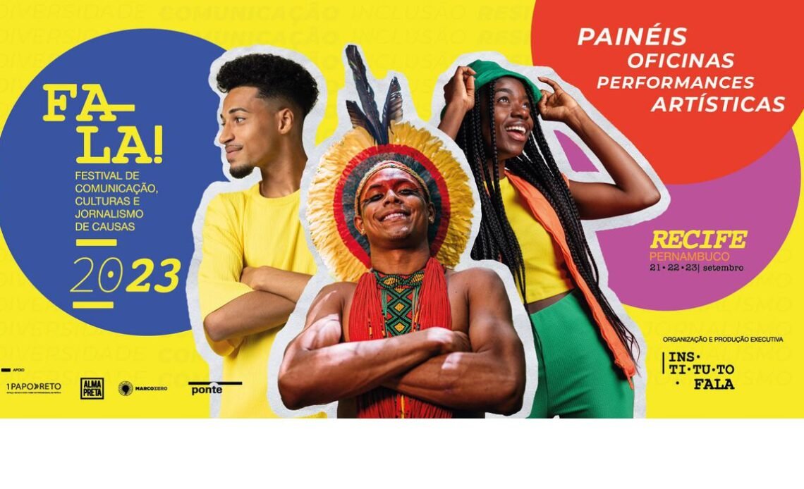 O Instituto Fala! promove a partir do próximo dia 21, em Recife (PE), a quarta edição gratuita do Fala! – Festival de Comunicação, Culturas e Jornalismo de Causas, que se estenderá até o dia 23 deste mês, com atividades realizadas no Centro Cultural Cais do Sertão. As inscrições para participar presencialmente estão abertas no site do Sympla, onde pode ser acessada também toda a programação. As duas primeiras edições, em 2020 e 2021, ocorreram de forma remota na plataforma digital do Sesc São Paulo. A terceira, no ano passado, foi realizada presencialmente em Salvador (BA).