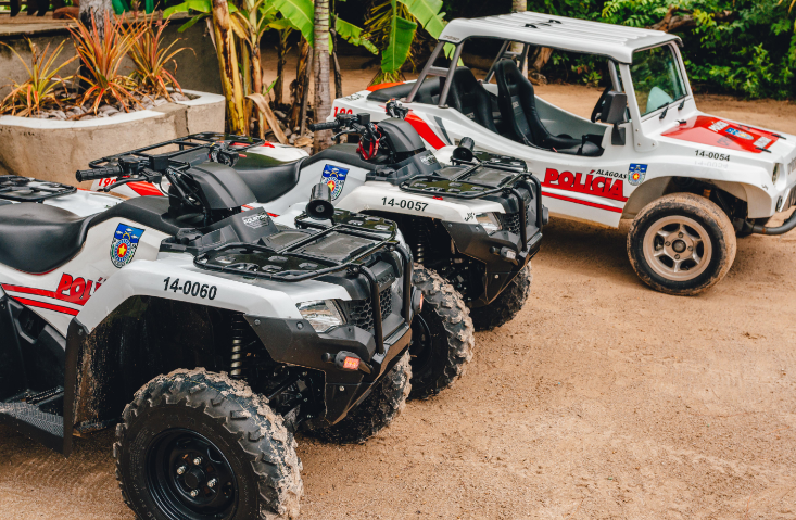 O Governo de Alagoas entregou equipamentos para colaborar com a segurança pública na região turística Costa dos Corais. Dois veículos quadriciclos e um do tipo buggy passam a integrar a frota da Polícia Militar do Estado de Alagoas e devem reforçar o patrulhamento da corporação nos municípios de Barra de Santo Antônio, Japaratinga, Maragogi, São Miguel dos Milagres, Paripueira, Porto Calvo, Porto de Pedras e Passo do Camaragibe, no Litoral Norte de Alagoas.