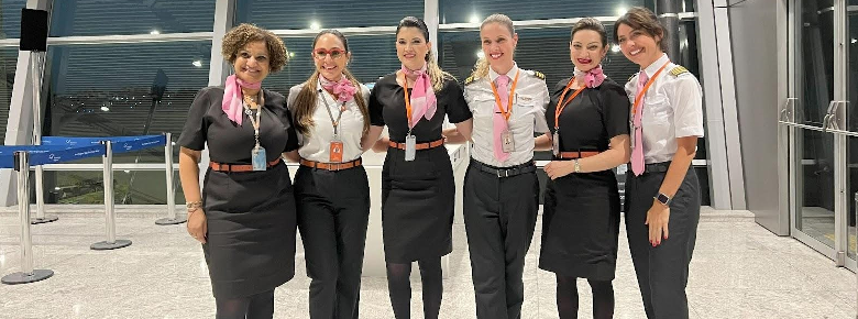 Os clientes foram surpreendidos com uma tripulação 100% feminina, incluindo não apenas a chefe de cabine e comissárias, mas também a comandante e copilota. O serviço de bordo também foi especial, repleto de itens cor-de-rosa: sanduíche feito em pão cor-de-rosa e cheesecake de morango. Para complementar a experiência, a Águas Prata presenteou cada passageiro com uma lata de Pink Lemonade não-alcoólico, além de oferecer água mineral sem gás. Outras opções de bebidas, já presentes no serviço de bordo tradicional da GOL, também estavam disponíveis.