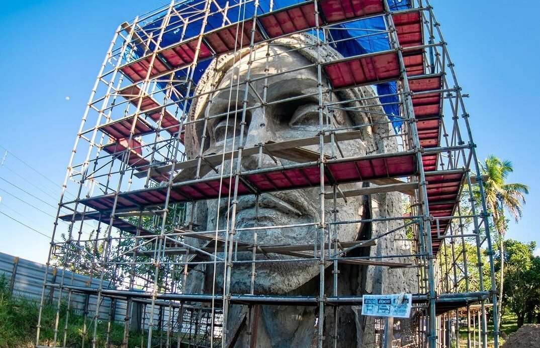 A base da estátua e o rosto do Cristo já podem ser observados por quem visita o Complexo Cultural e Religioso Dilma Canuto, localizado no Alto do Santo Cruzeiro. Com investimento na ordem de R$ 12,2 milhões, o monumento de quase três mil toneladas é assinado pelo escultor Markus Moura, o mesmo que esculpiu o Cristo de Encantado.