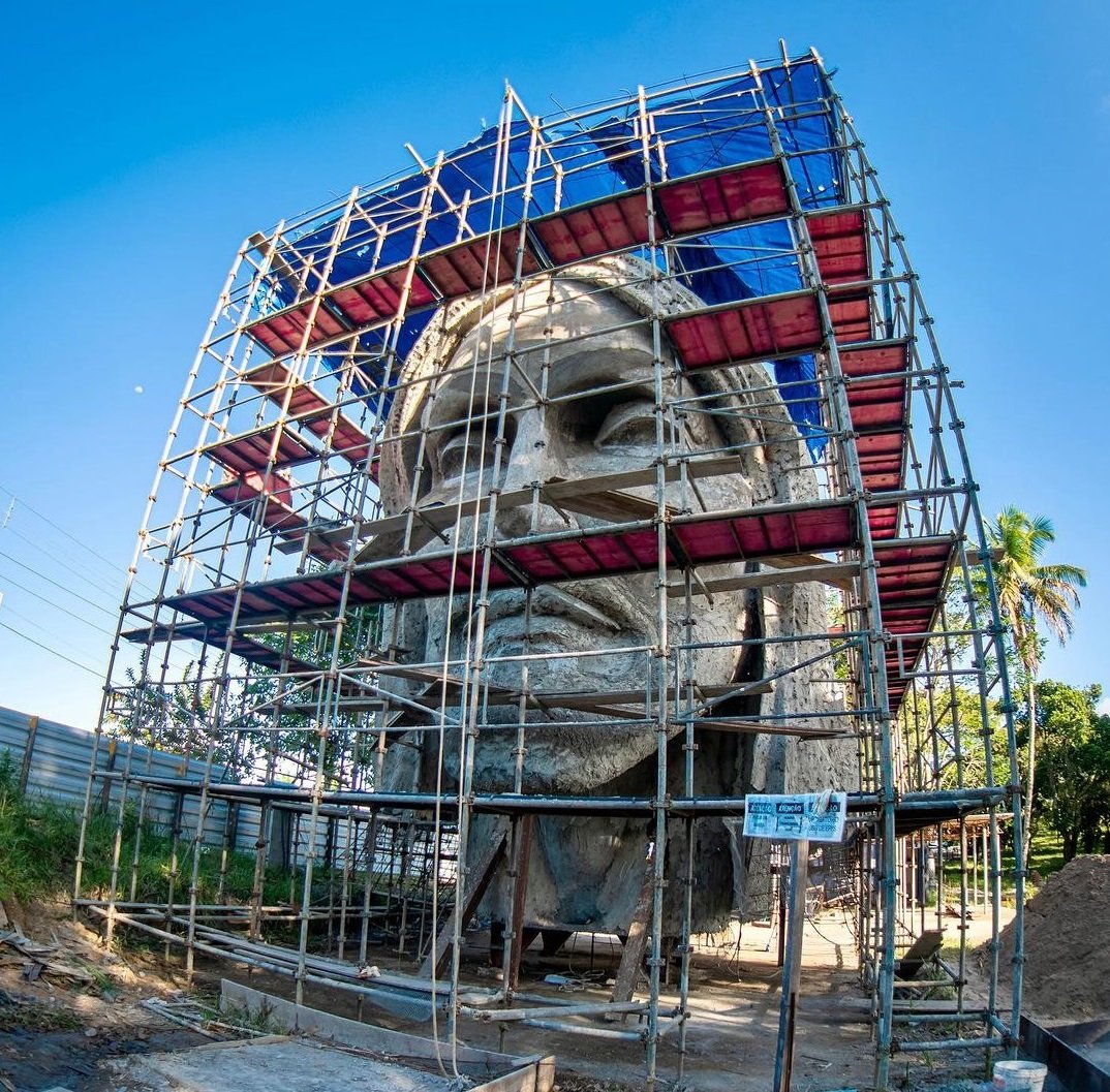 Em Pilar, o artista cearense lidera uma equipe de cinco profissionais, entre auxiliares, soldadores e armadores. Ao todo, as obras mobilizam quase 50 trabalhadores, incluindo os operários da construtora responsável pela base e tronco da escultura. Outra curiosidade é que um elevador interno levará os visitantes à plataforma de vidro localizada no coração do Cristo, com direto à visão panorâmica da cidade banhada pela Lagoa Manguaba.