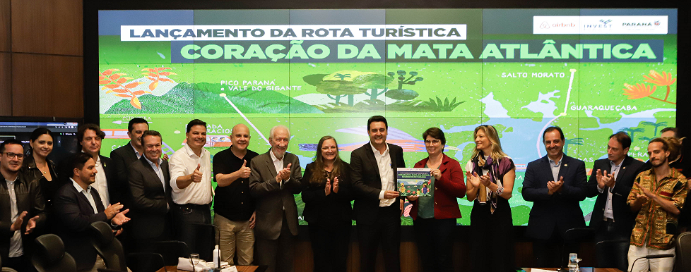 O Governo do Estado e o Airbnb lançaram nesta segunda-feira (22), no Palácio Iguaçu, a rota de turismo sustentável “Coração da Mata Atlântica: segredos do Paraná”. O roteiro foi apresentado pelo governador Carlos Massa Ratinho Junior e diretores da empresa e vai contar com uma página especial dentro da plataforma do Airbnb para promover viagens que valorizam a cultura e a economia das comunidades locais nas áreas do bioma, no Litoral do Paraná.