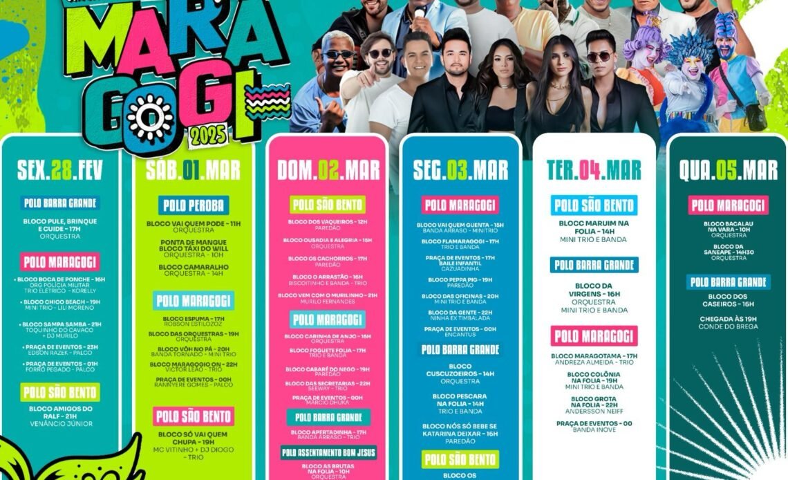 Confira a programação completa do Carnaval de Maragogi 2025: