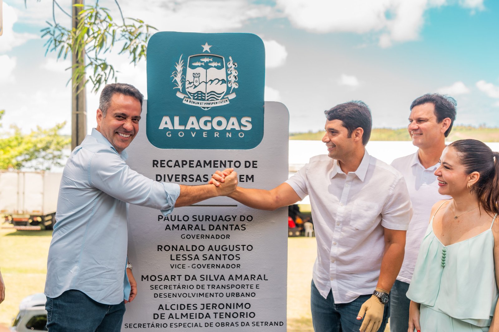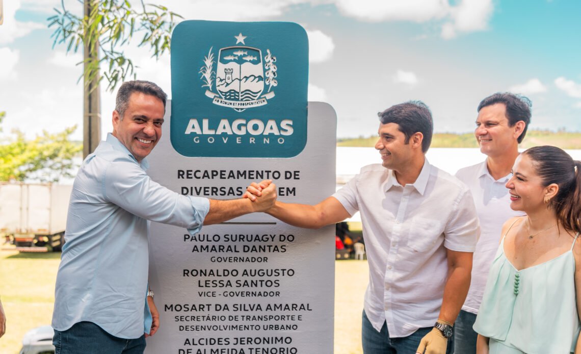 O governador Paulo Dantas entregou sete quilômetros de pavimentação asfáltica no povoado de Ponta de Pedra, no município de Jequiá da Praia. Ao lado do prefeito Felipe Jatobá, Paulo Dantas descerrou a placa de inauguração da rodovia, que ganhou não só asfalto como sinalização vertical e horizontal, faixa de pedestre, drenagem e lombadas.