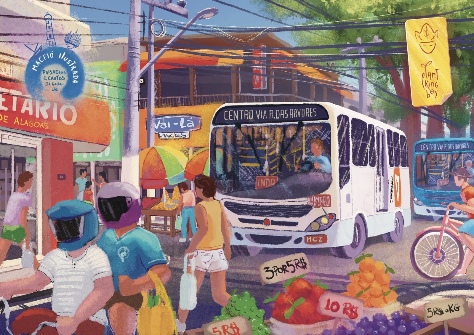 Com um olhar lúdico sobre o cotidiano, o ilustrador buscou capturar detalhes que, muitas vezes, passam despercebidos. “Na correria, passamos por tantos locais sem prestar atenção nos detalhes. Eu gosto de detalhes, eles moldam a paisagem: a fiação nos postes, o trânsito, as pessoas circulando, a poeira, a luz, as sombras. Eles ajudam a contar uma história, sabe?”, reflete.