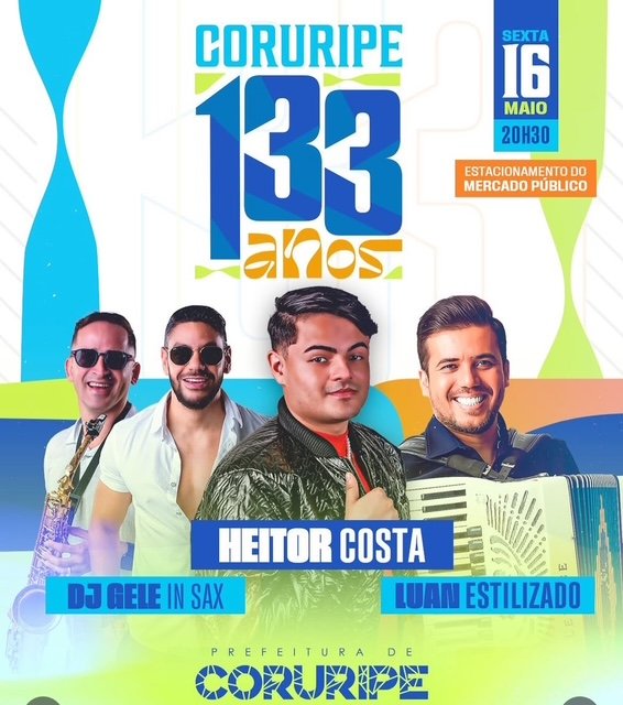 Coruripe faz 133 anos e uma grande festa está programada. Dia 16 de maio vai ser de festa, com show musical de Luan Estilizado e Nestor Costa. Também haverá entrega de obras. O prefeito Marcelo Beltrão e toda sua equipe de governo convida a toda população a participar da programação.