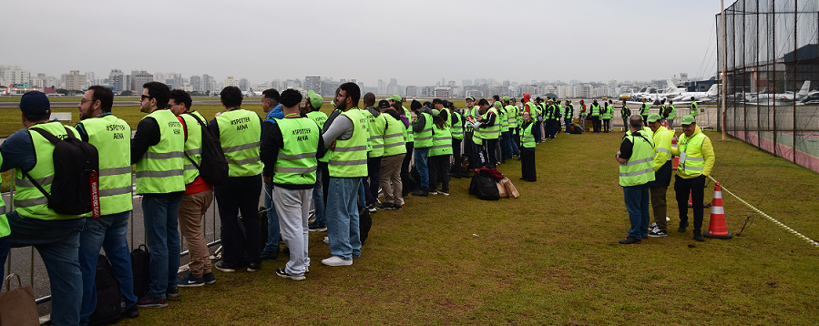 O dia começou bem cedo. Os participantes começaram a chegar ainda na madrugada, antes mesmo das 5h. Quando as operações de Congonhas tiveram início, às 6h, todos já estavam posicionados e com as câmeras a postos para o intenso vai e vem de pousos e decolagens. Foram seis horas de contemplação de aeronaves e milhares de cliques.
