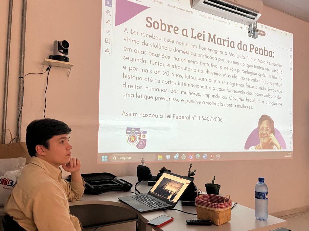 “Para casos de vida ou morte, ligue direto no 190! Não perca tempo! Outras denúncias podem ser feitas em até 6 meses depois do ocorrido. E a lei está atualizada: vale a palavra da mulher. O que ela disser já é tomado como prova — não é necessário vídeo, foto, print ou qualquer outra prova”, revela o soldado Paulo César, que ministrou as palestras.