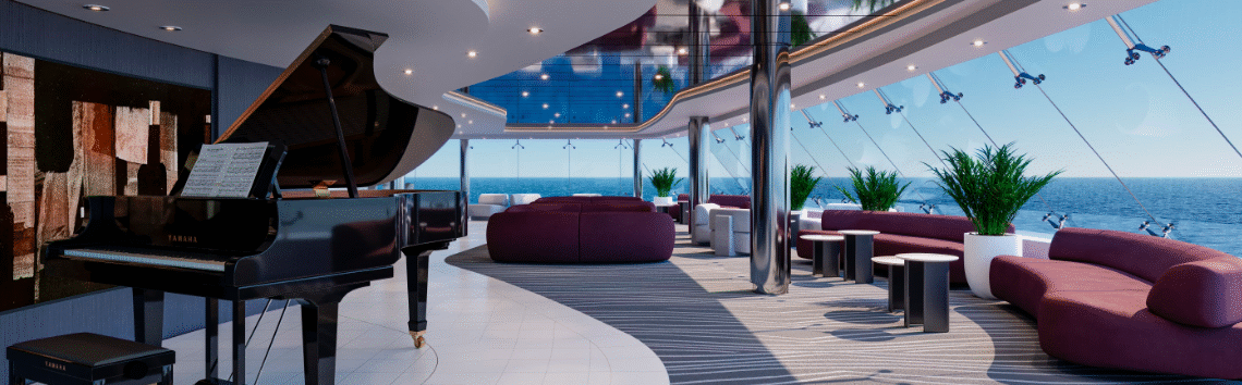 • NOVO! Top Sail Lounge – bar e lounge privativo, espaço elegante banhado por luz natural localizado na proa do navio, com janelas do piso ao teto e ambiente tranquilo para coquetéis, música ao vivo ou momentos de contemplação.