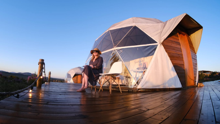- Glamping (Camping com Glamour): A combinação perfeita entre natureza e conforto de hotel. Pense em tendas de luxo ou cabanas com cama king-size, ar-condicionado, vista panorâmica e até banheira.