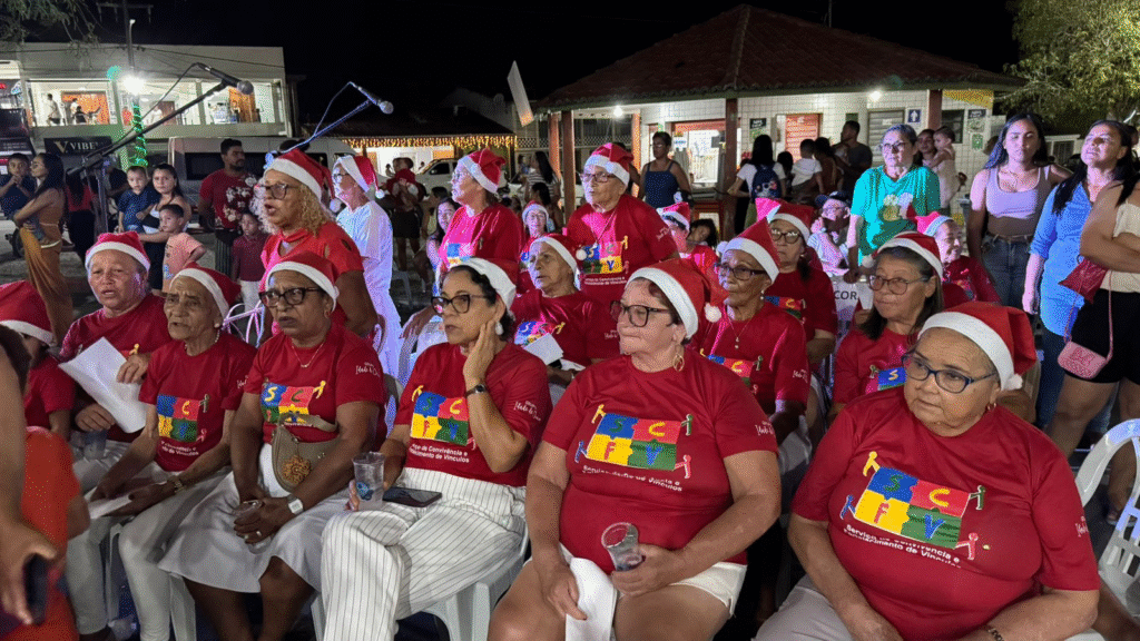 O evento, realizado na praça principal do município, contou com expressiva participação da população, reunindo crianças, adolescentes, adultos e idosos atendidos pelos equipamentos socioassistenciais. A programação contemplou o tradicional cortejo natalino, seguido de apresentações do Coral de Mulheres e Idosos e da Banda Fanfarra do Serviço de Convivência e Fortalecimento de Vínculos (SCFV), atividades que integram a metodologia de convivência, expressão cultural e fortalecimento do protagonismo dos usuários.