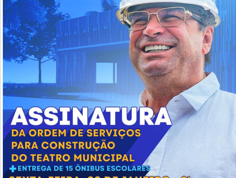 O prefeito de Arapiraca, Luciano Barbosa, assina nesta sexta-feira, 09, a ordem de serviço para a construção do Teatro Municipal de Arapiraca, que será erguido ao lado do Centro de Convenções, no lago da Perucaba.