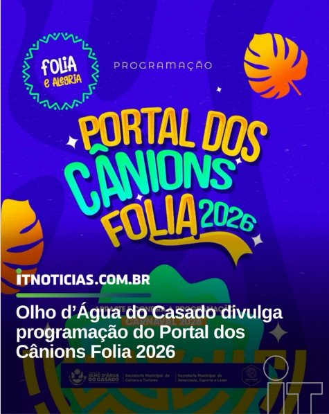 A Prefeitura de Olho d’Água do Casado anunciou o cronograma oficial do Portal dos Cânions Folia 2026. A festividade busca unir a tradição do Carnaval de rua com o potencial turístico da região, oferecendo atividades que vão desde desfiles temáticos no Centro até apresentações musicais na orla fluvial do município.