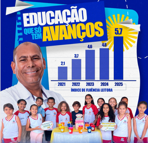 A Educação de Olho d’Água do Casado celebra uma conquista histórica. O município alcançou a nota 5,7 no Índice de Fluência Leitora.