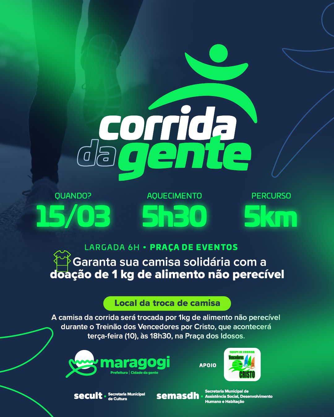 A Prefeitura de Maragogi reforça o convite para que moradores e visitantes participem da atividade, promovendo um momento de integração, incentivo à prática esportiva e apoio às ações solidárias desenvolvidas no município.