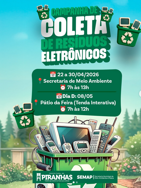 A Prefeitura de Piranhas, por meio da Secretaria Municipal de Meio Ambiente, promove uma ação de coleta de resíduos eletrônicos.